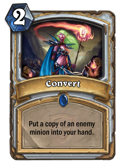 I’m drooling over all the options with this card: Alexstrasza, Dr. Boom, Archmage Antonidas, and so many others. At two mana its flexibility is unprecedented and will almost never be a dead card. Priest’s stealing powers were always really strong, but this might just take the cake (joke only partially intended.)